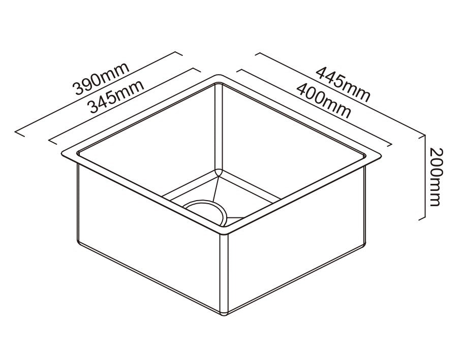 - Overall Sink Size: 390mm X 445mm X 200mm