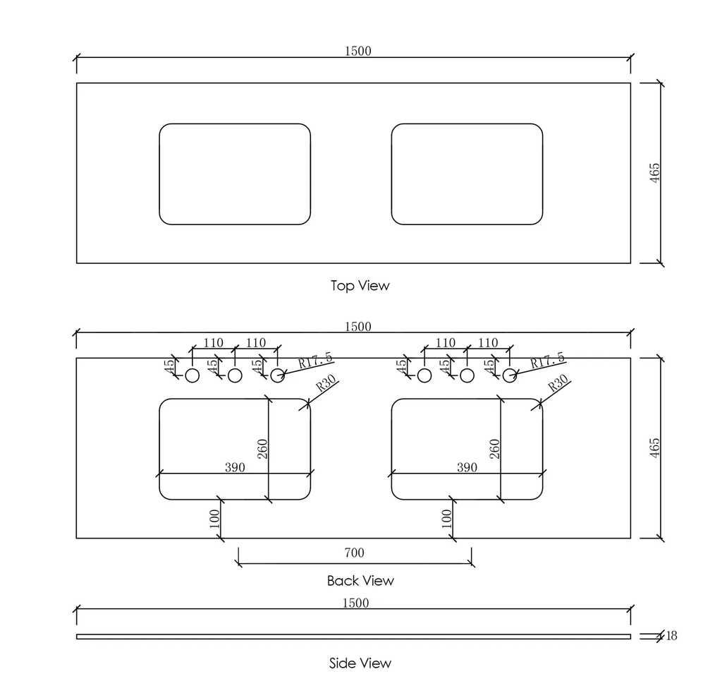 - Size: 1200mm X 465mm X 18mm | 1500mm X 465mm X 18mm | 1800mm X 465mm X 18mm